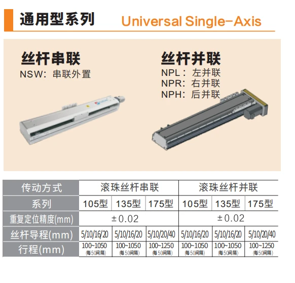 多種組合方式,靈活多變 利用專用連接件,可根據(jù)需要隨意將多條機械手組合使用,兩軸直角式組合、三軸直角式組合,三軸龍門式組合。 重復(fù)定位精度均為士0.02mm 重復(fù)定位精度:即機械手在同一點進行重復(fù)定位時,停止位置誤差的最大范圍值。 高強度、高剛性型材底座 底座采用高強度擠壓鋁合金型材,為中空加強結(jié)構(gòu),表面陽極氧化處理,保證了機械手運行時的剛性。